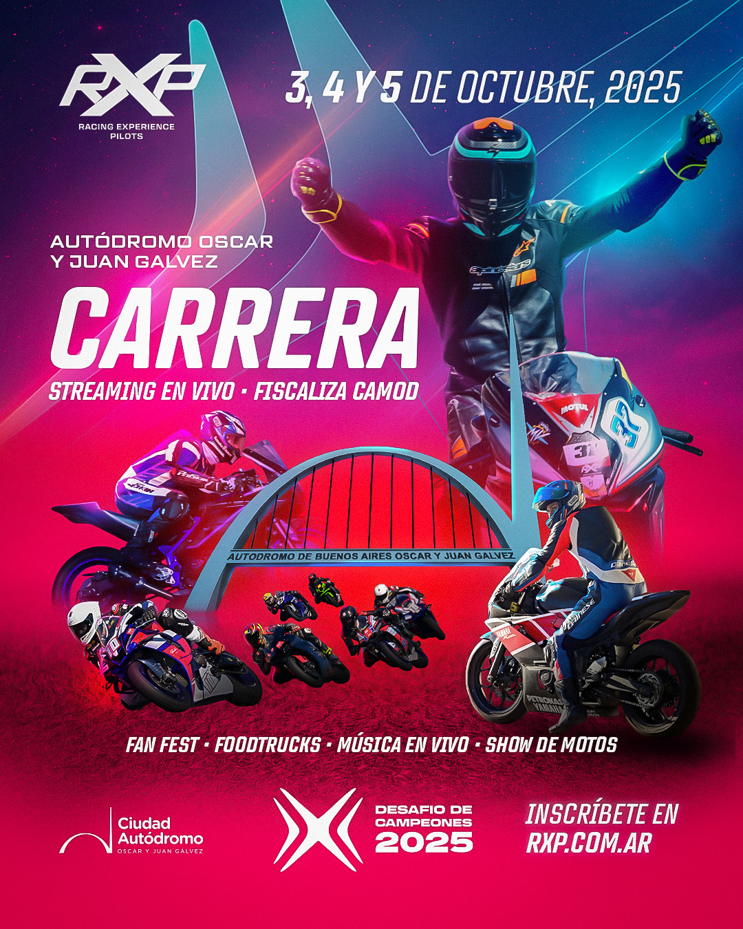 🇦🇷 ÚNETE A LA NUEVA ERA: Desafío de Campeones no es solo una carrera; es el renacer de la pasión, la velocidad y el espíritu competitivo que une a toda Sudamérica. Organizado por RXP Racing Experience Pilots, este es un evento con nivel de Gran Premio.